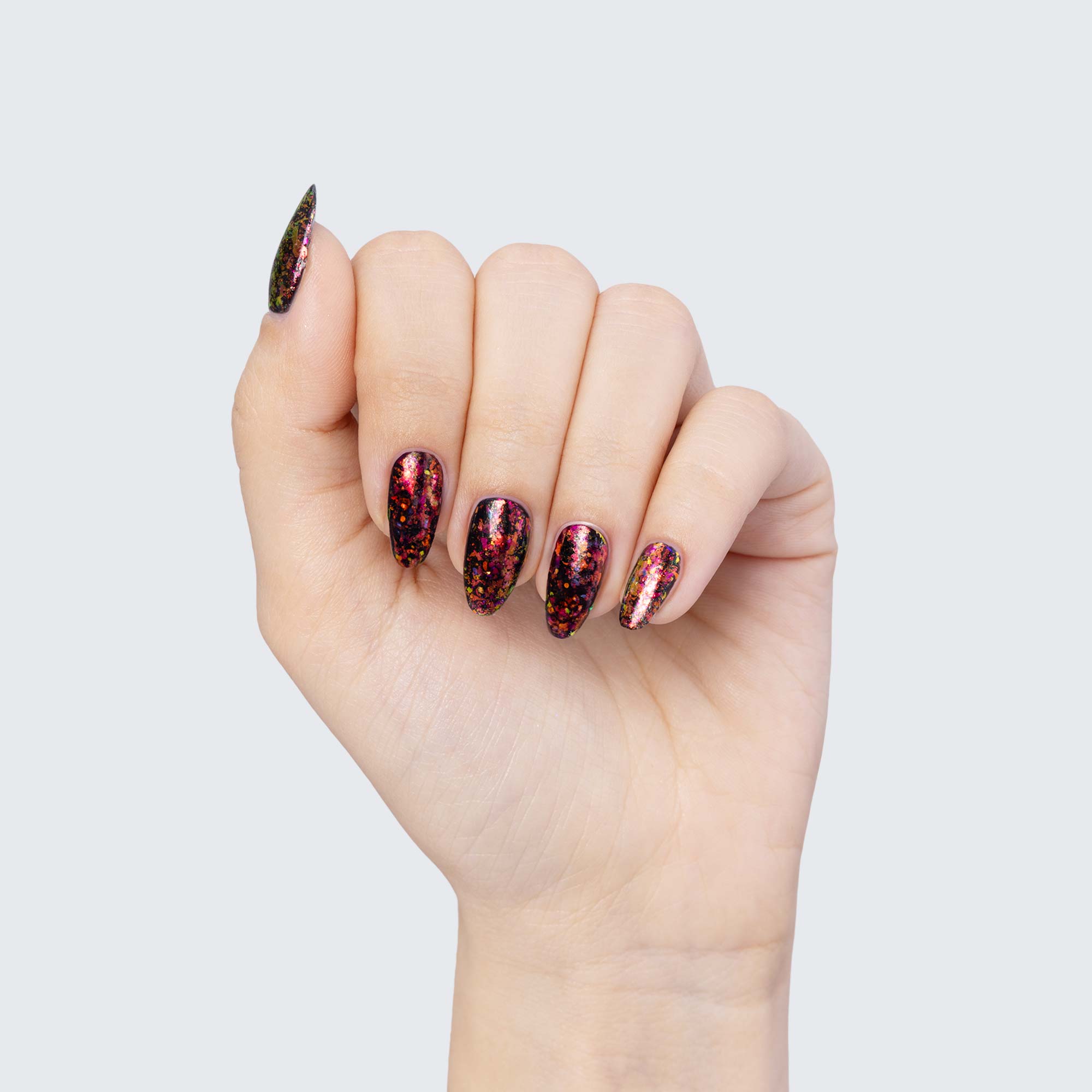 The ethereal allure of PRECIOUS FLAKES makes them a marvelous choice for manicures whose beauty can outreach any stretch of imagination. Because they are semi-translucent, each individual colour scheme takes on surprisingly varied hues depending on which gel polish you use as a base.